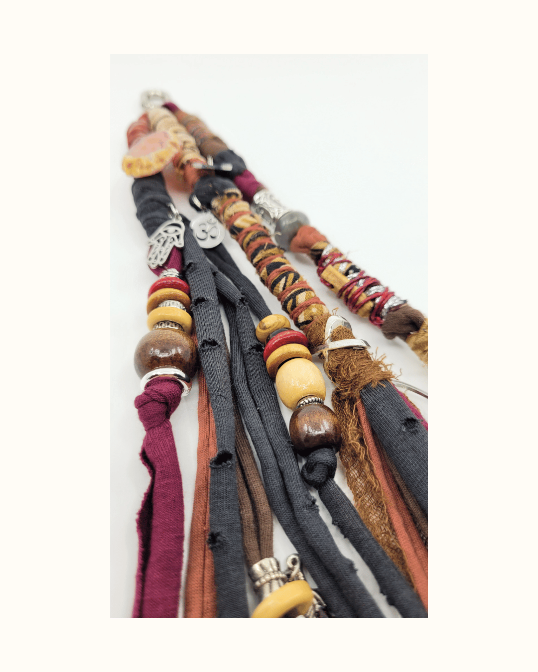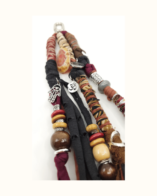Bedels met symbolen: Hart Chakra, Khamsa, Ohm en Spiraal.
